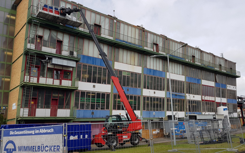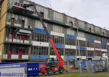 Projekt: Sanierung/Kompletterneuerung einer überhängenden Fassade (Vorher-Nachher-Bild)